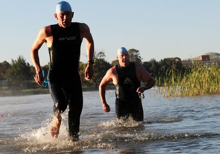 The race started at dawn with 12 hardy individuals tackling the first of 3 swims in Lake Ginnenderra.