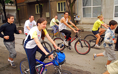In the city of Vratsa some famous sportsmen organized a relay in the streets of the city, every kilometre a personality of sport waited to run with the torch.