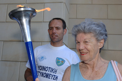 At the hotel we again met with Mrs. Tserioti, the Deputy Mayor of Nicosia, and made some nice group pictures. Holding the torch she said a few nice words before we started off.
