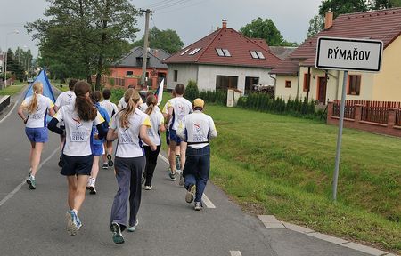 Mistostarosta Hanak a další entusiastičtí děti s námi běželi přes obec.