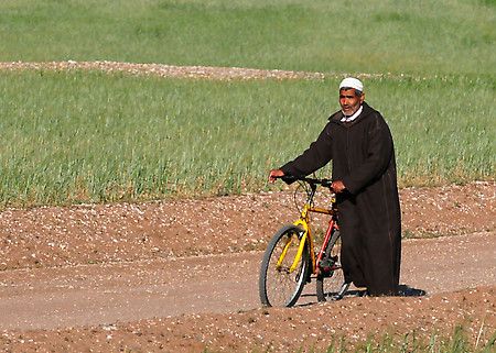 Patricio from Portugal points to an unusual small building at one point, as we wait for a runner. He is the linguist of our band, speaking 5 languages. He has absorbed small, useful chunks of Arabic as well over the past week. He has also amazed me by even speaking a few words of Czech, which is the default principal language of our team. The small sand-coloured building sits off by itself on a gentle hillside, surrounded by grass and spring flowers. Patricio tells me that the small domed building is a Marabou, a tomb of a holy man.