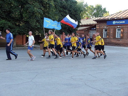 На въезде в Красноармейск нас дружно встретили местные юные спортсмены.