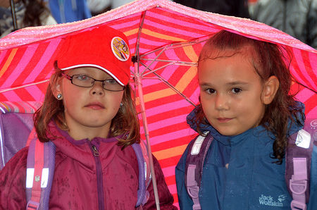 A wet day in Switzerland! Nevertheless, we visited seven schools and the kids defied the rain!