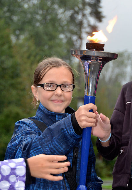 ...in Rueun kids from the secondary school carried the torch up to the school...