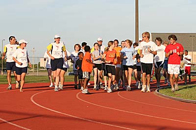 The Union High School track team does a few victory laps with the torch.