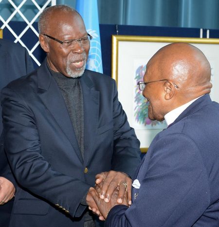 Ambassador Davidson Hepburn above (right) with Archbishop Tutu holding the award.