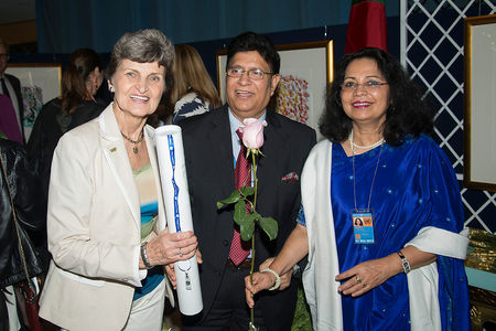 Ranjana Ghose: "We would like to request Ambassador Momen to present each of our special guests with a print of Sri Chinmoy's art work 'Peace feeds the children'. There is also a cookie which is the form of a peace dove. It is so appropriate for tonight's exhibition at this location and a theme that Sri Chinmoy was so very fond: of a peace bird, a peace dove and roses here.