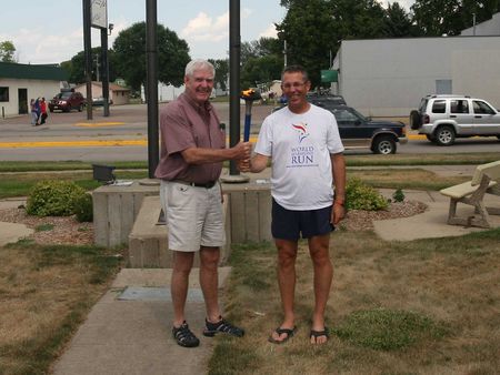 The President of South Sioux City Rotary club came to recieve the torch.